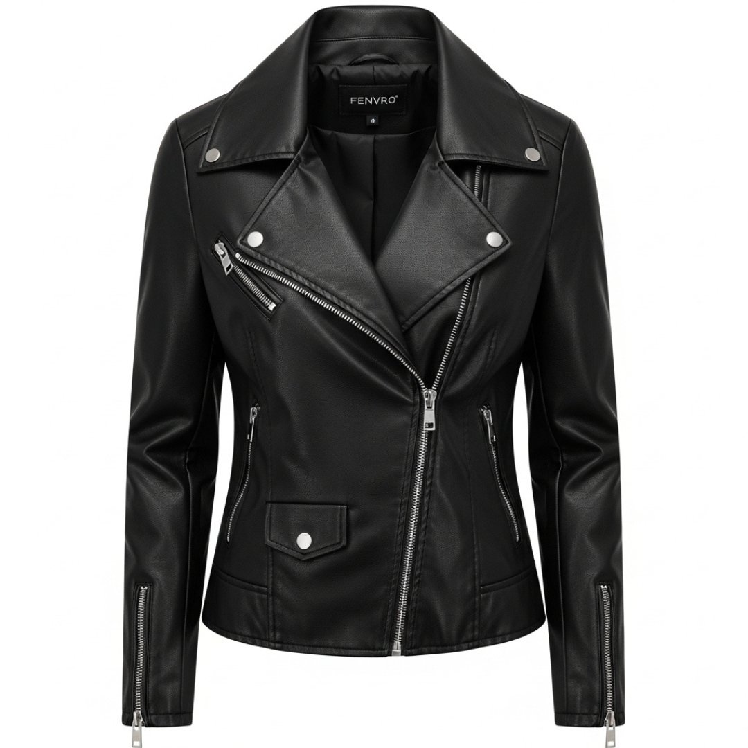 Fenvro Chaqueta Biker de Cuero Sintético para Mujer – Estilo Atemporal