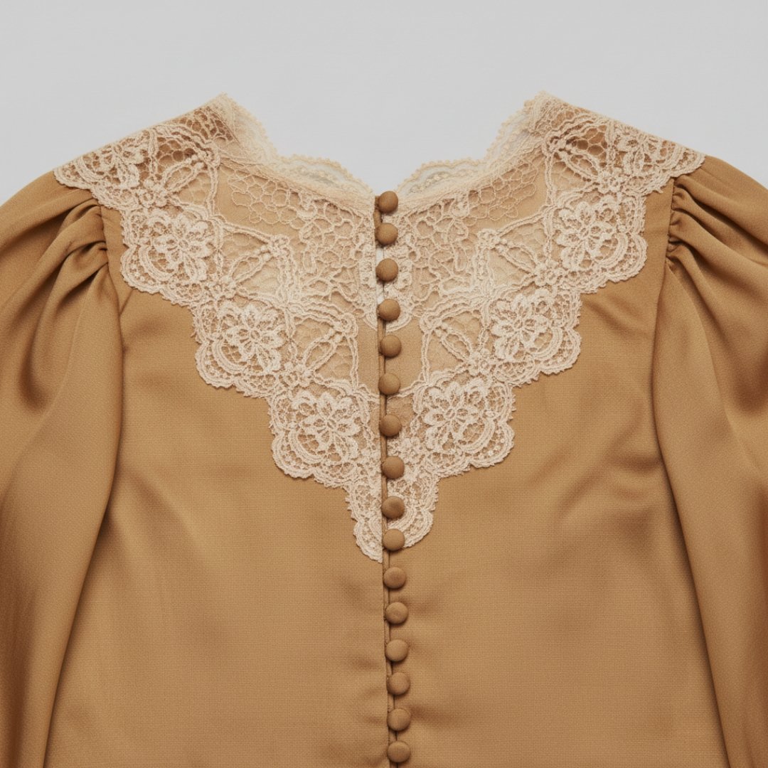 Encaje Sutil en Escote y Puños: detalla la feminidad clásica con un acabado sofisticado.